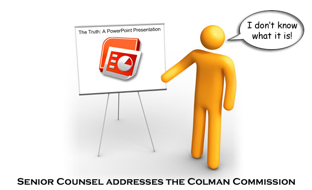 Last week Wednesday and Thursday I appeared before the Colman Commission to give my testimony in this matter. On Wednesday afternoon there was a very negative reaction to my attempts to introduce a Power-Point presentation as a way to better illustrate some of the points I have been making. It was a frustrating and comical experience for me to hear supposedly learned men asking ‘What is this?’ and one of them even saying that he had no idea what it was…Here, in Port-of-Spain in 2011, we have learned men saying that they don’t know what a Power Point presentation is for. Of course, I am all for transparency, so their patently transparent ‘blocking tactics’ were most welcome, because they showed the viewers on TV just ‘Who is Who and What is What’. Thank you, colleagues, for doing a better job than I ever could have. The public is not stupid and your behaviour has had a clear impact on those who were viewing. That said, the Commissioner ruled that my evidence would be taken the next morning and so it was.